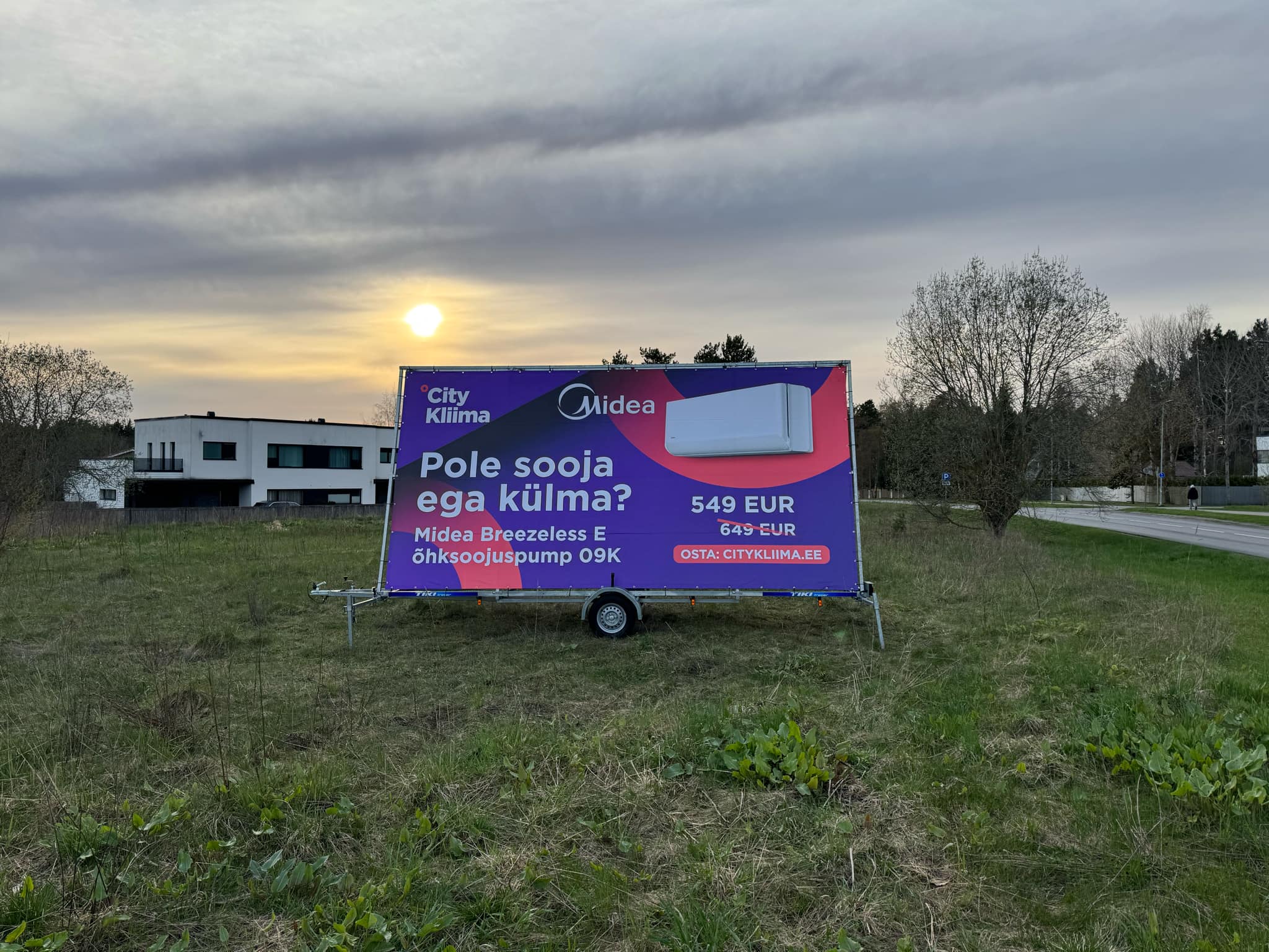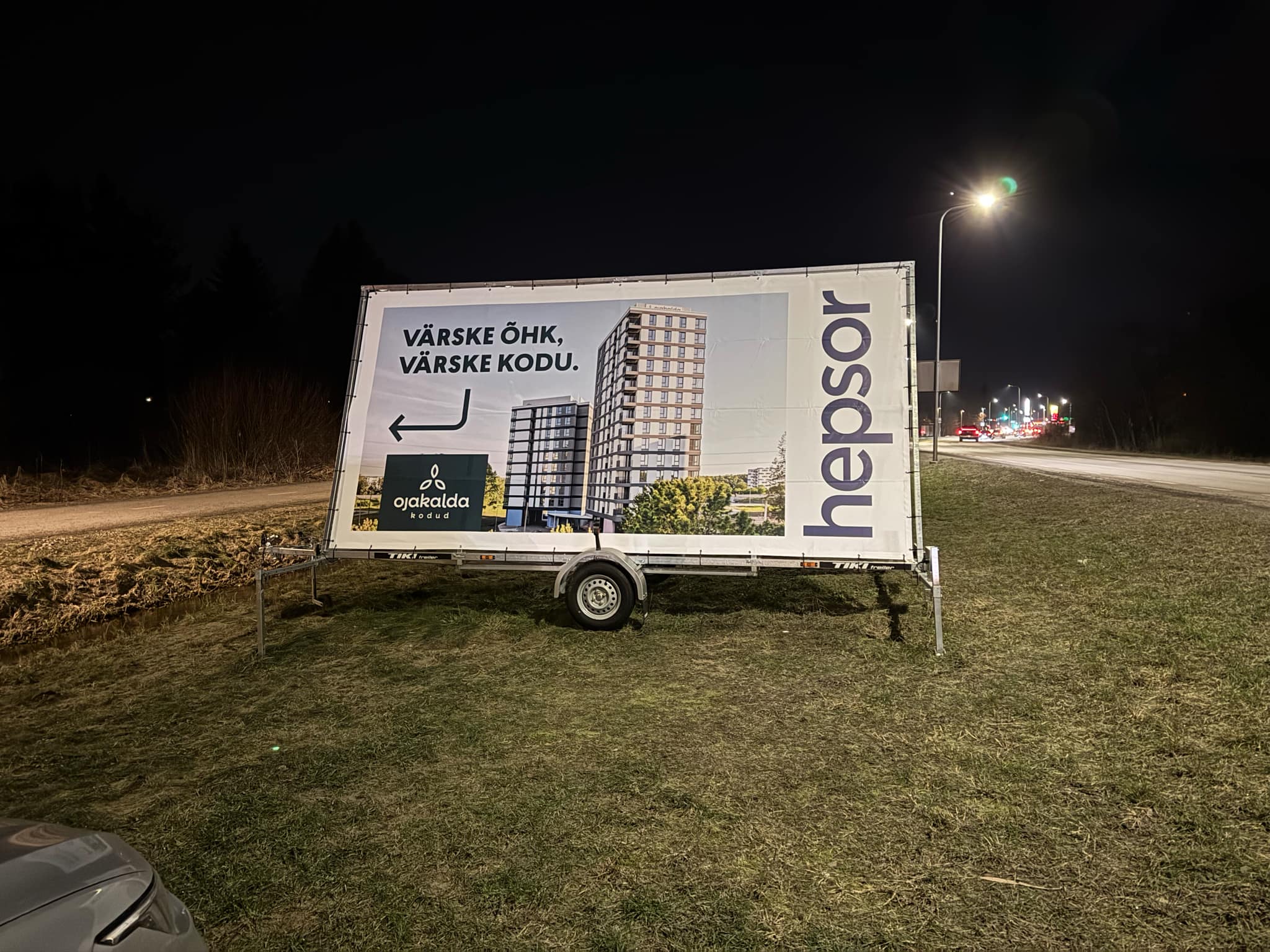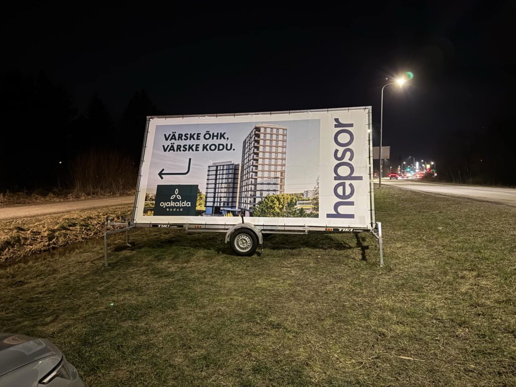 Korraldame reklaamtreilerite kampaaniaid üle terve Eesti. Valikus on kahes suuruses reklaamtreilerid, mis võmaldavad viia oma sõnumi otse sihtrühma juurde. Pakume täisteenust, mis sisaldab trükki, paigaldust ja asjaajamist omavalitsustega.